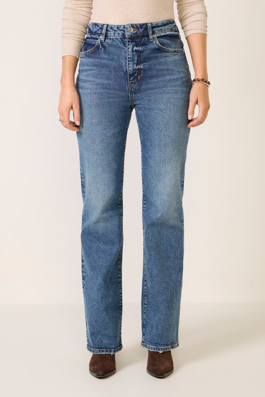 A wide bootcut leg defines the vintage-inspired silhouette of The Arrow jean by FRAME. featuring a flattering high-rise fit. full-length inseam. and soft cotton denim with a hint of stretch.
