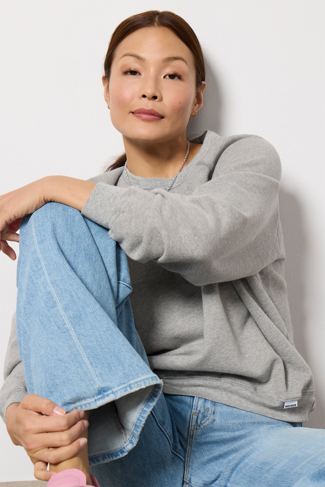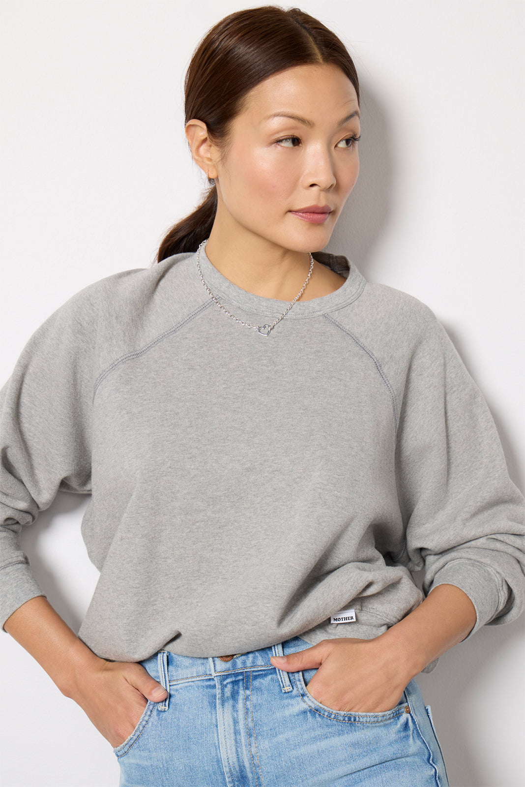 Stay comfy-chic in the Biggie Concert sweatshirt by MOTHER. Crafted in soft. comfortable cotton. this raglan pullover features a crew neckline. ribbed trim. and an easy. relaxed fit.