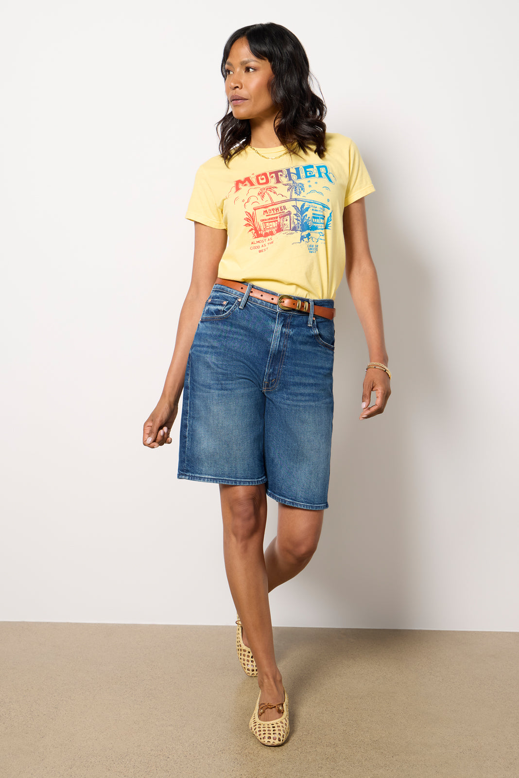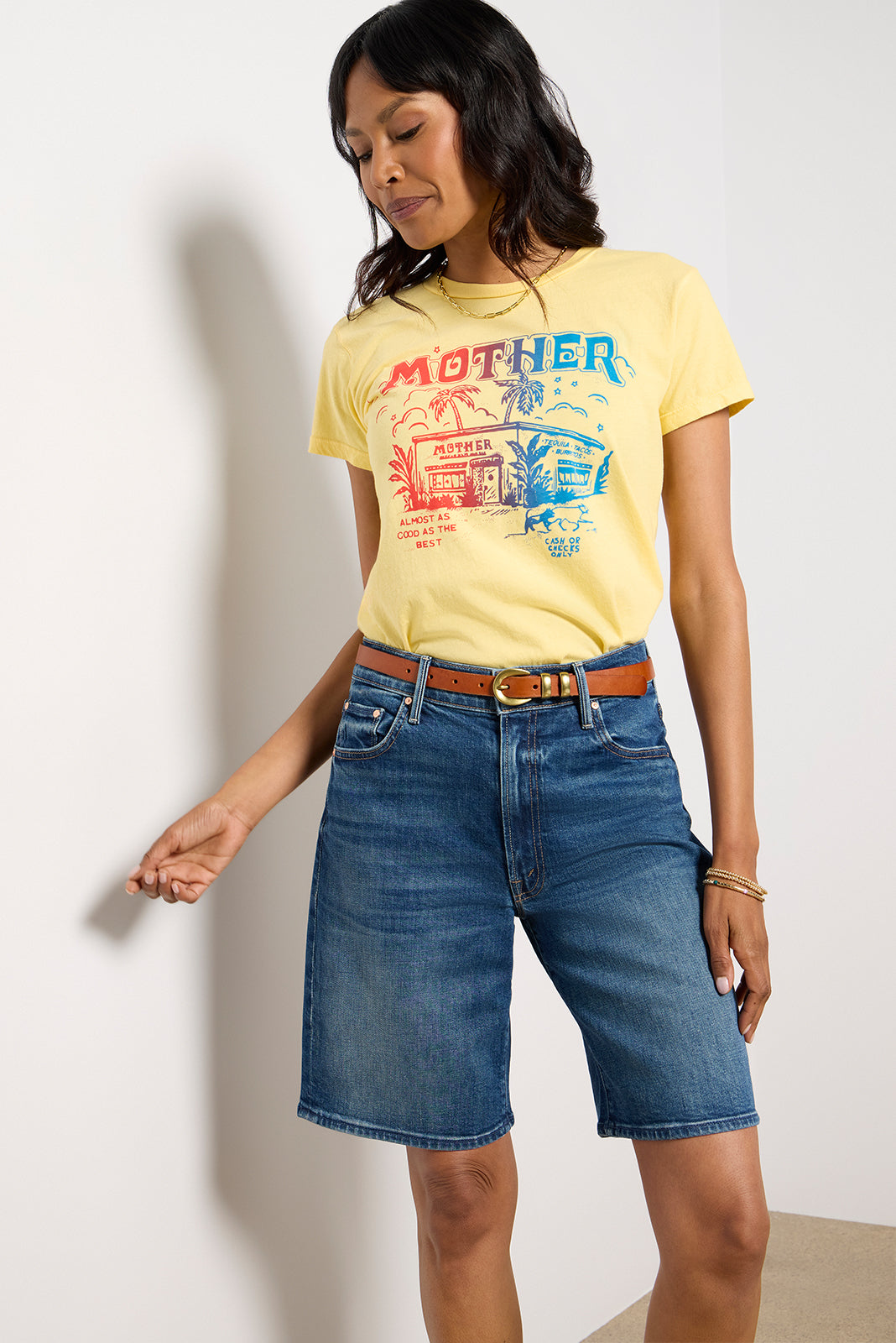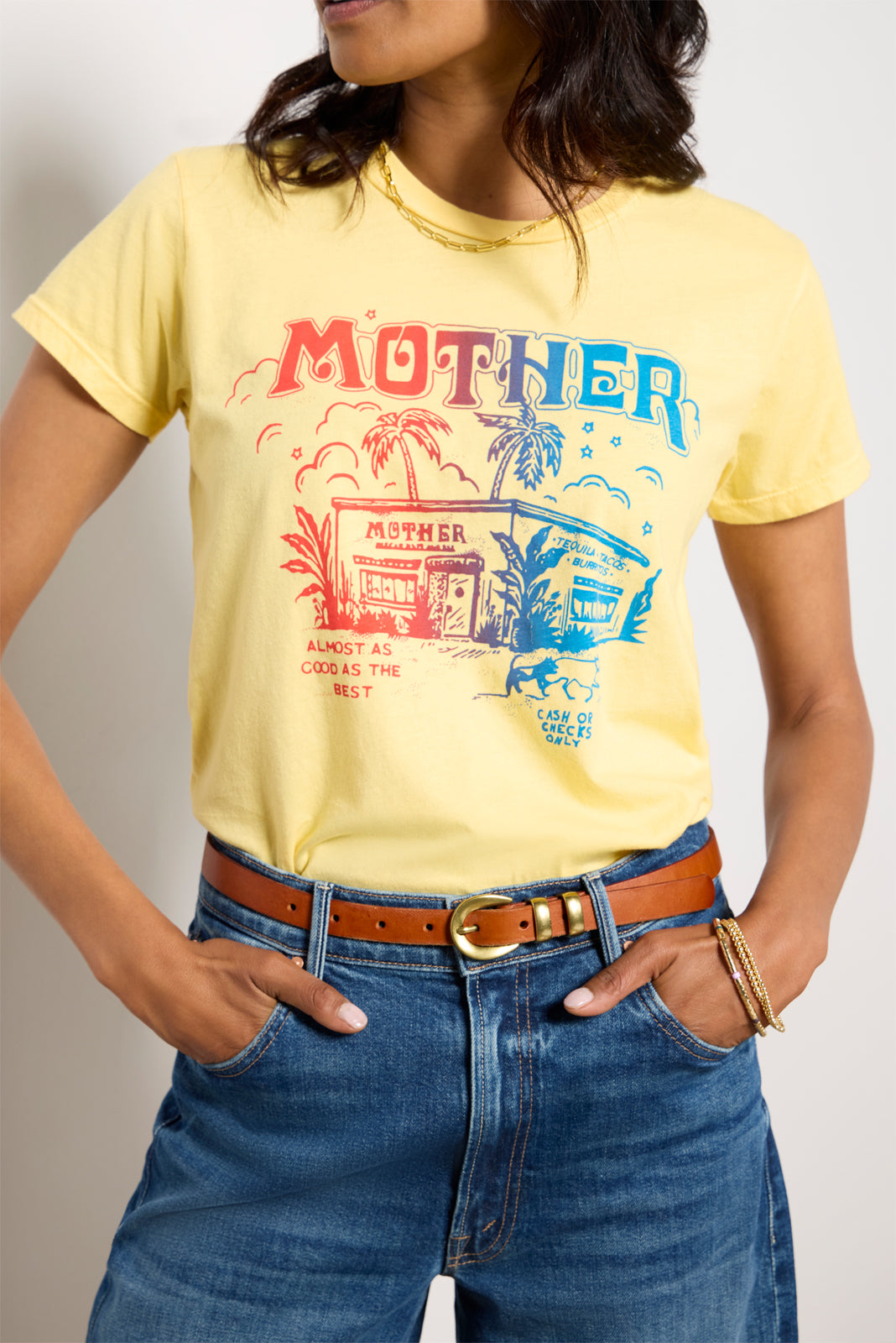 Top off your tee collection with The Boxy Goodie Goodie graphic t-shirt by MOTHER. crafted in soft cotton fabric with a crew neckline. short sleeves. and a slim fit for a vintage-inspired feel.