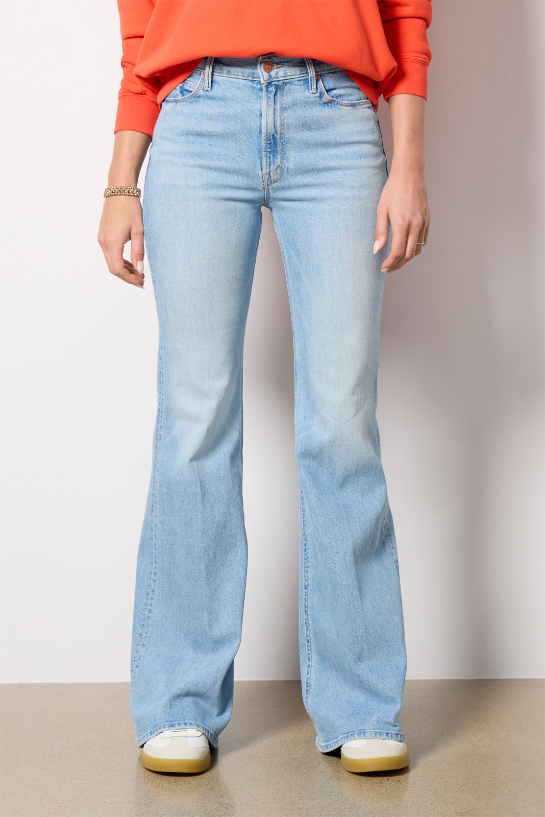 Crafted in stretch cotton denim. The Doozy Jean from MOTHER features a mid-rise waist. a flattering bootcut silhouette. and a versatile clean blue wash.