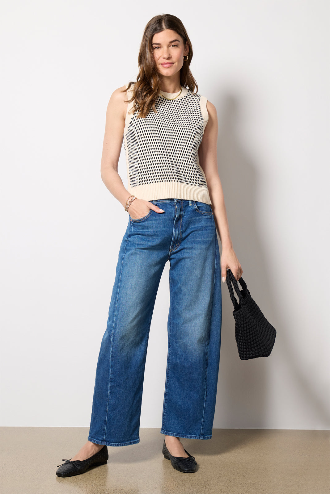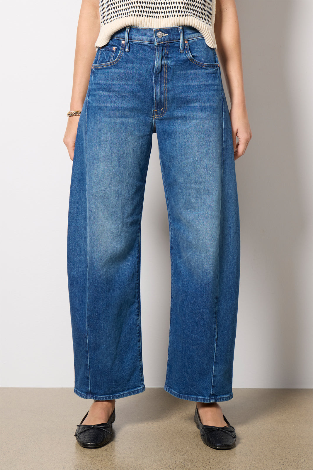 Update your denim collection with The Full Pipe Flood Jean by MOTHER. These stylish barrel jeans feature a high-rise fit. curved leg. and side panels for added dimension.