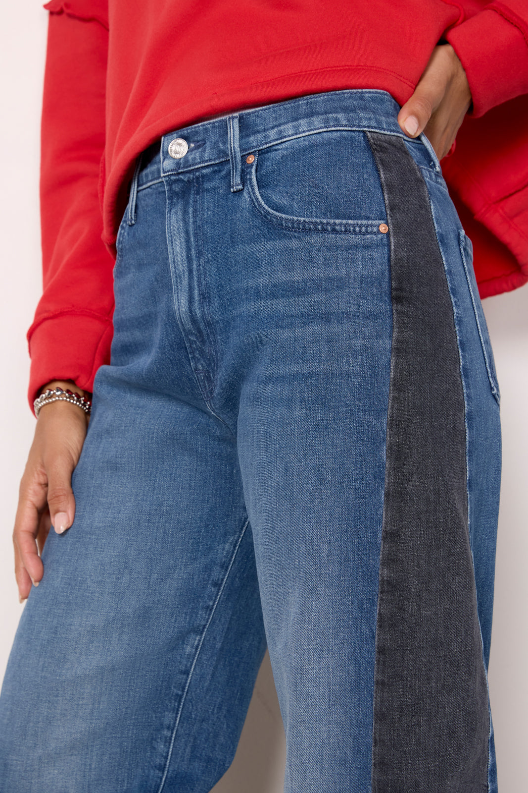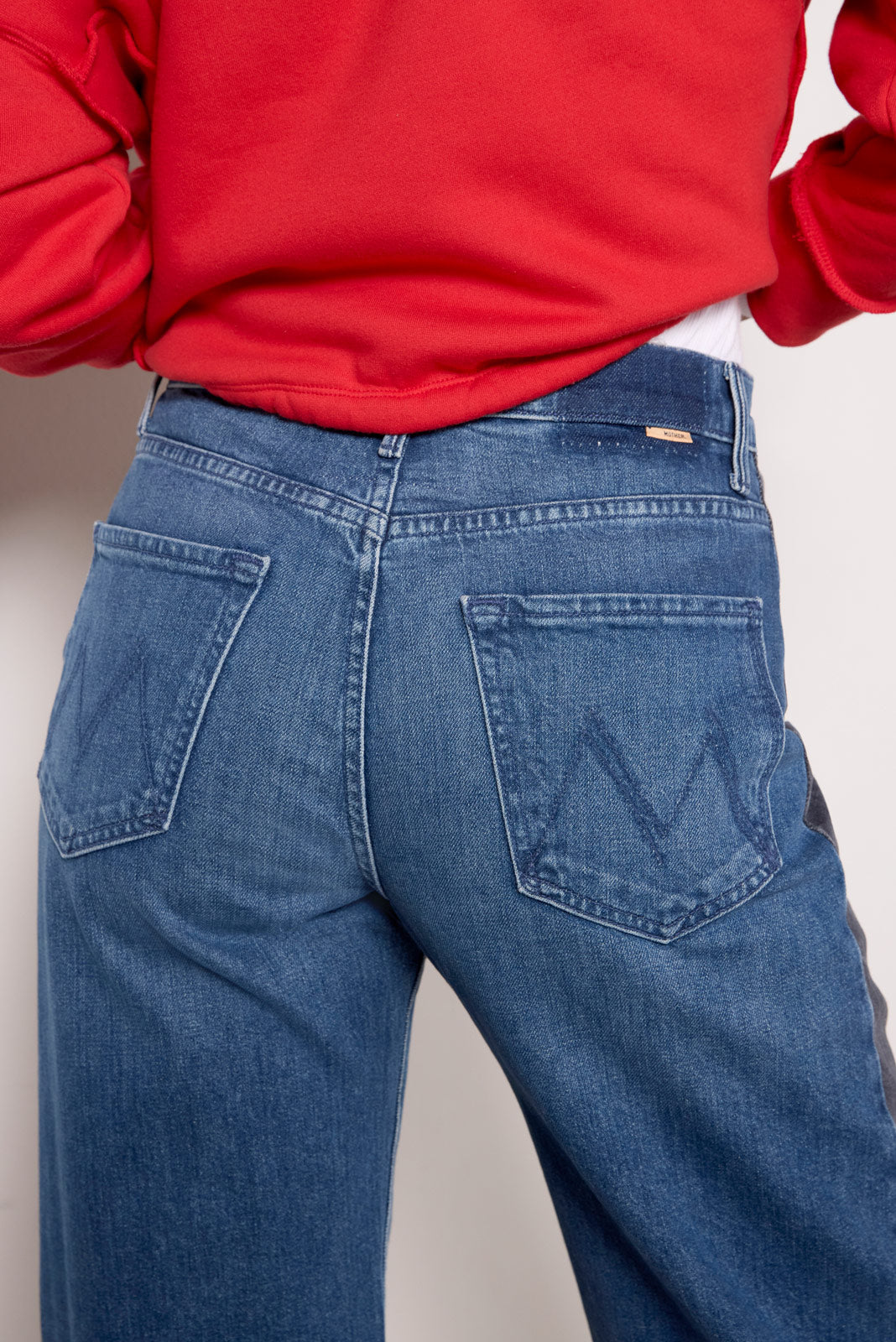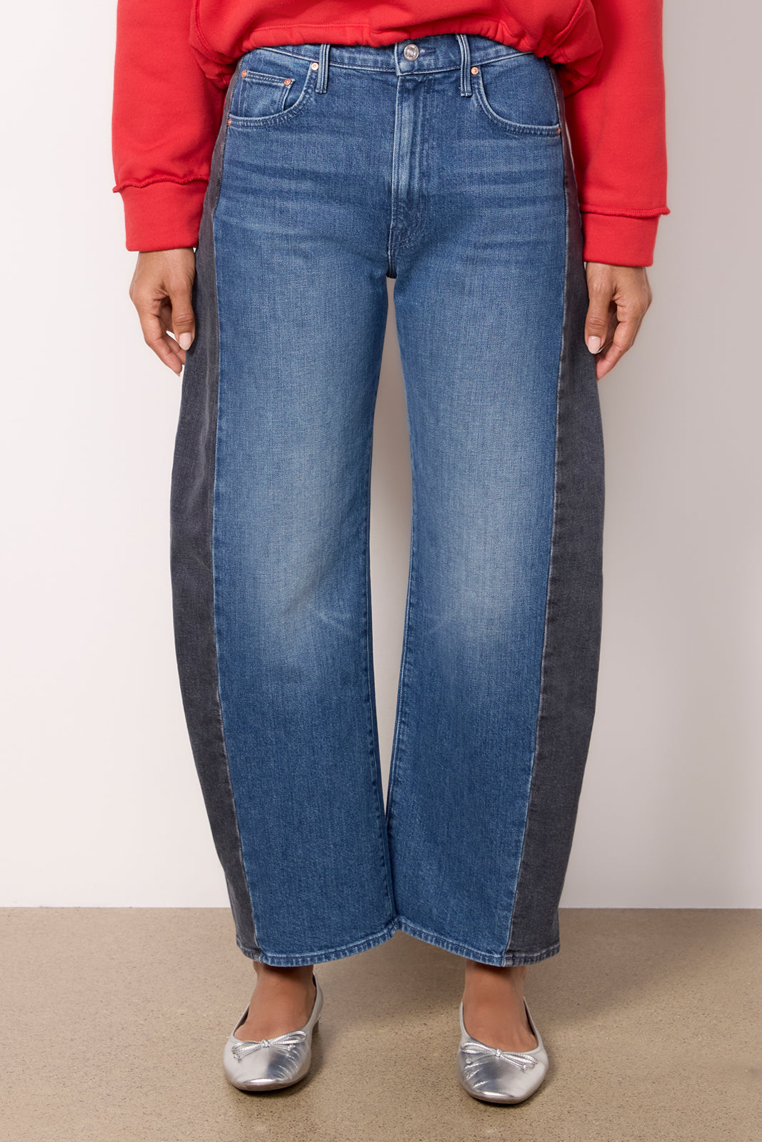 Update your denim collection with The Half Pipe Flood jean by MOTHER. These stylish barrel jeans feature a high-rise fit. curved leg. andĀ faded black side panels for a two-tone design.