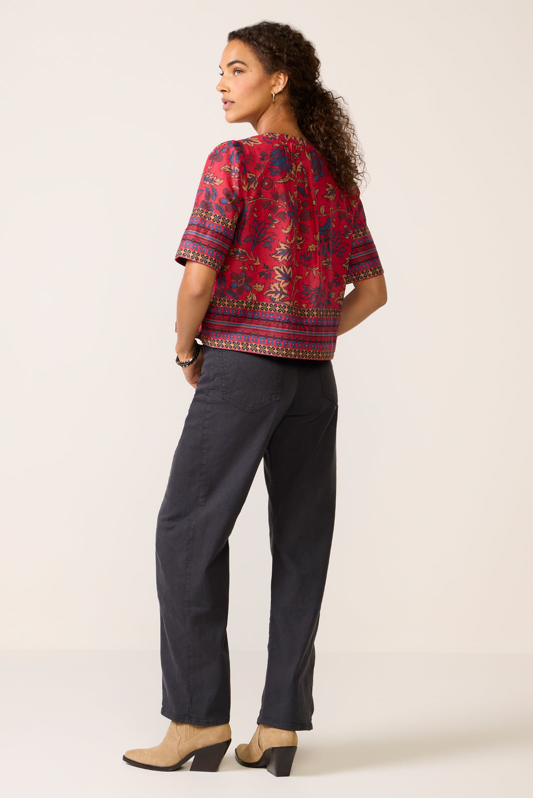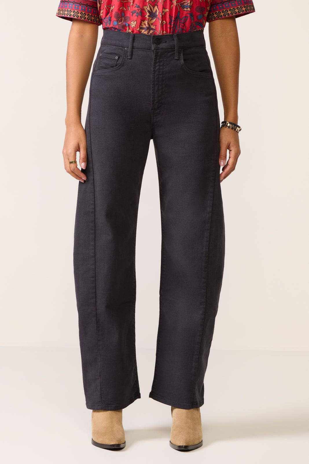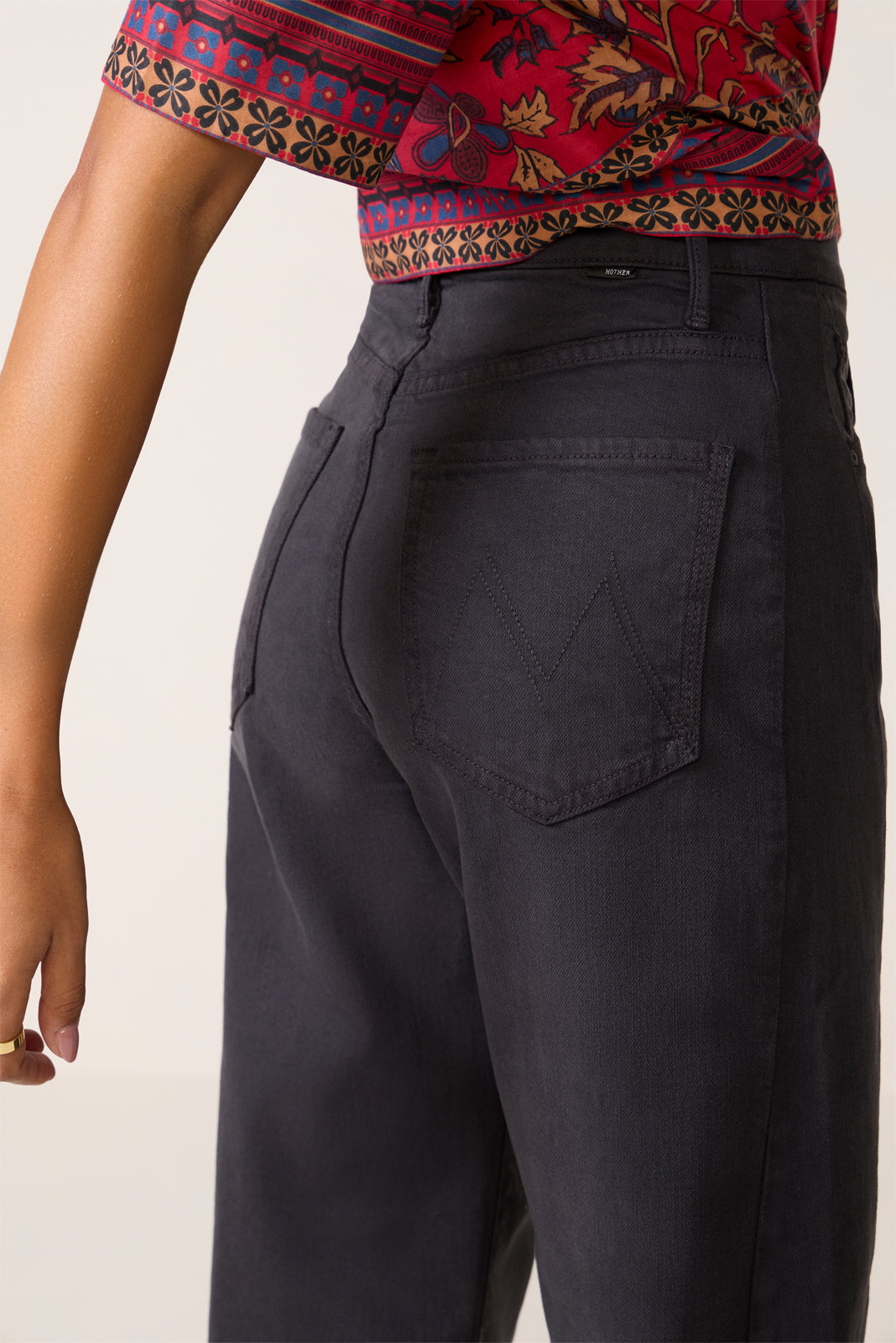 A curved wide leg creates the chic silhouette of The Half Pipe?barrel pant by MOTHER. featuring a high-rise?silhouette in stretch cotton-blend fabric.