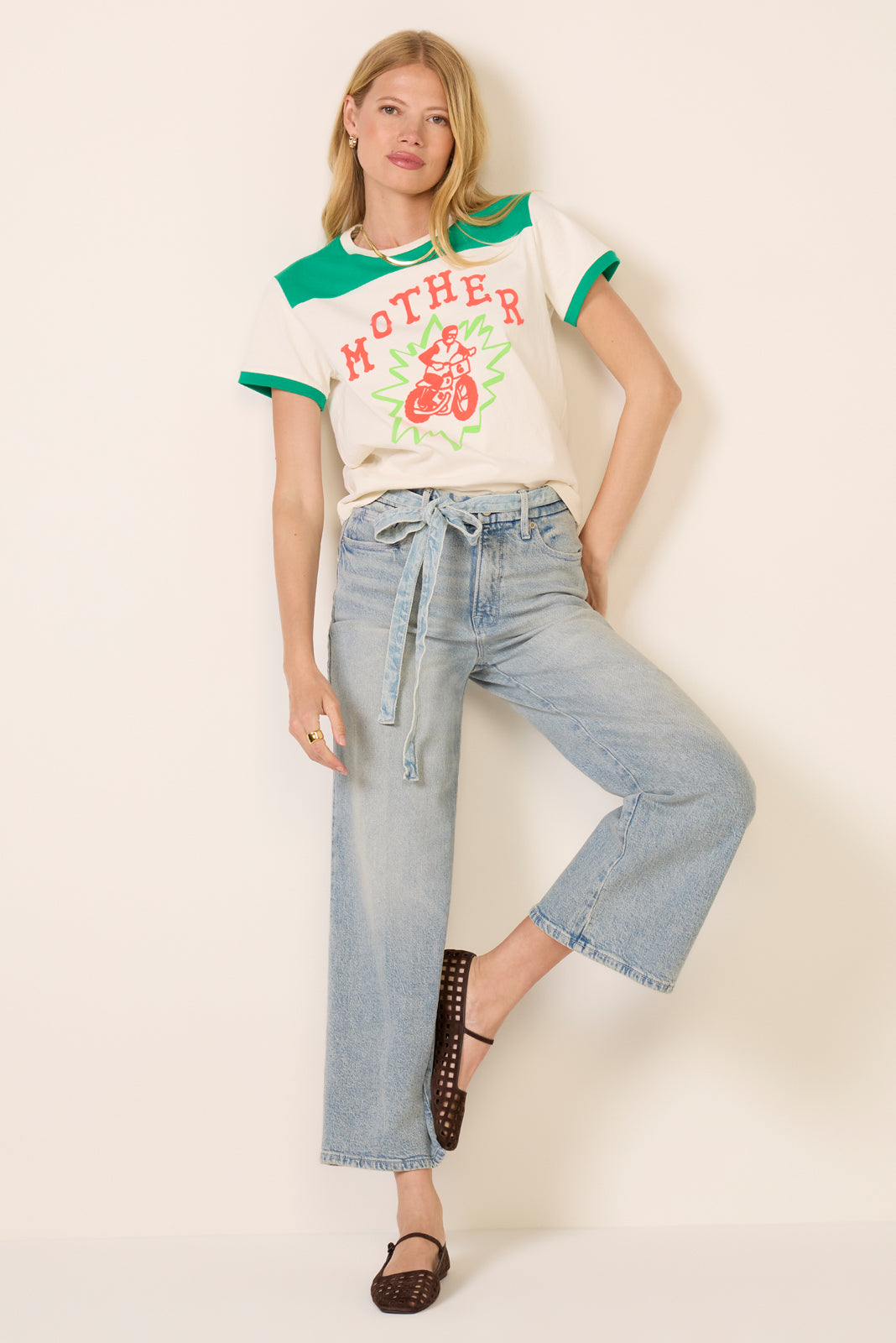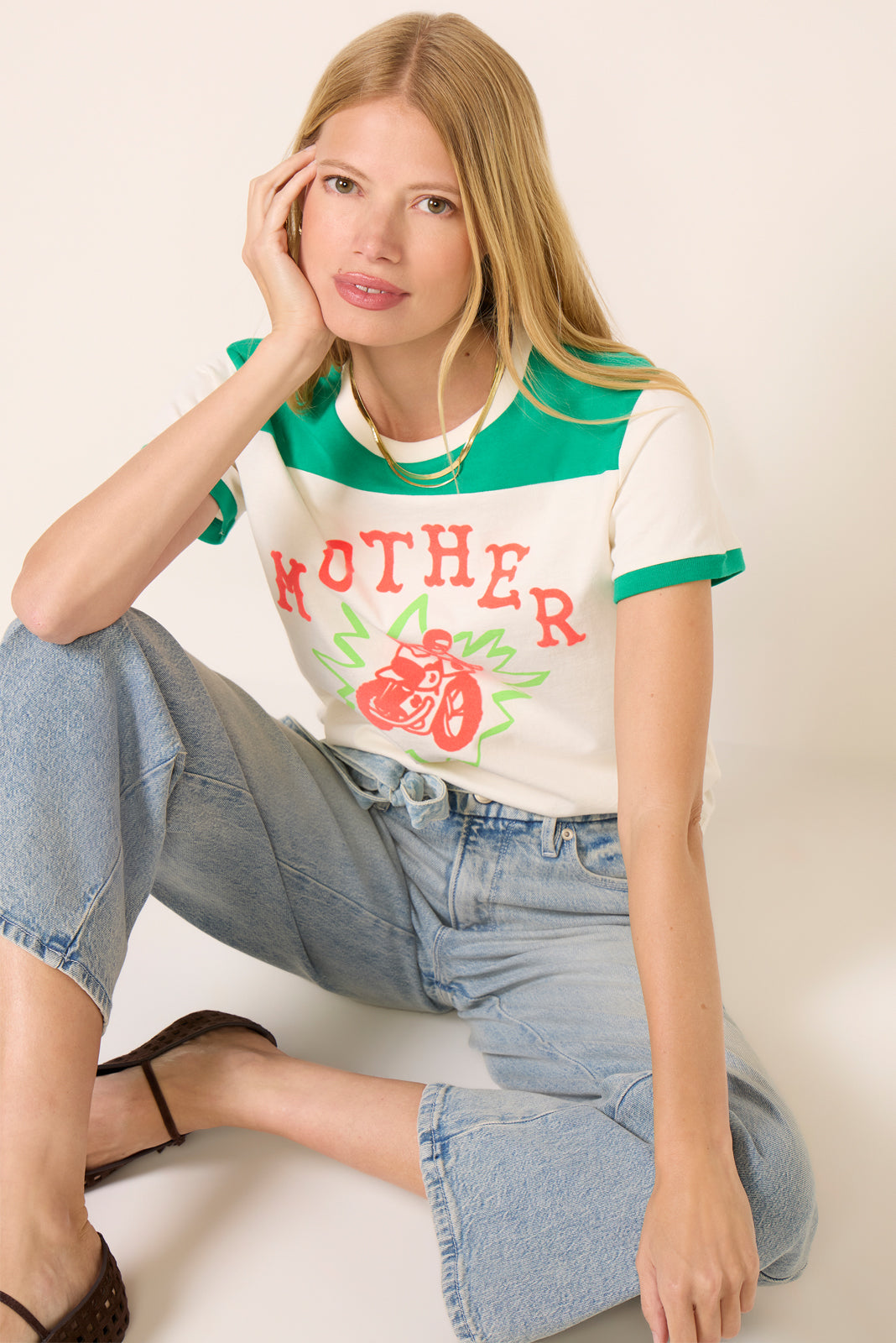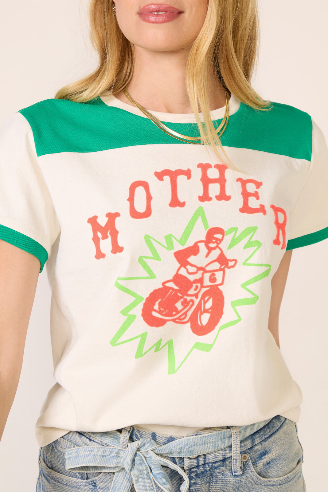 Finished in soft cotton. The Lil Baller?graphic tee by MOTHER features a classic crewneck silhouette with colorblocked detailing. fuzzy lettering across the front. and a vintage-inspired motorcycle graphic.